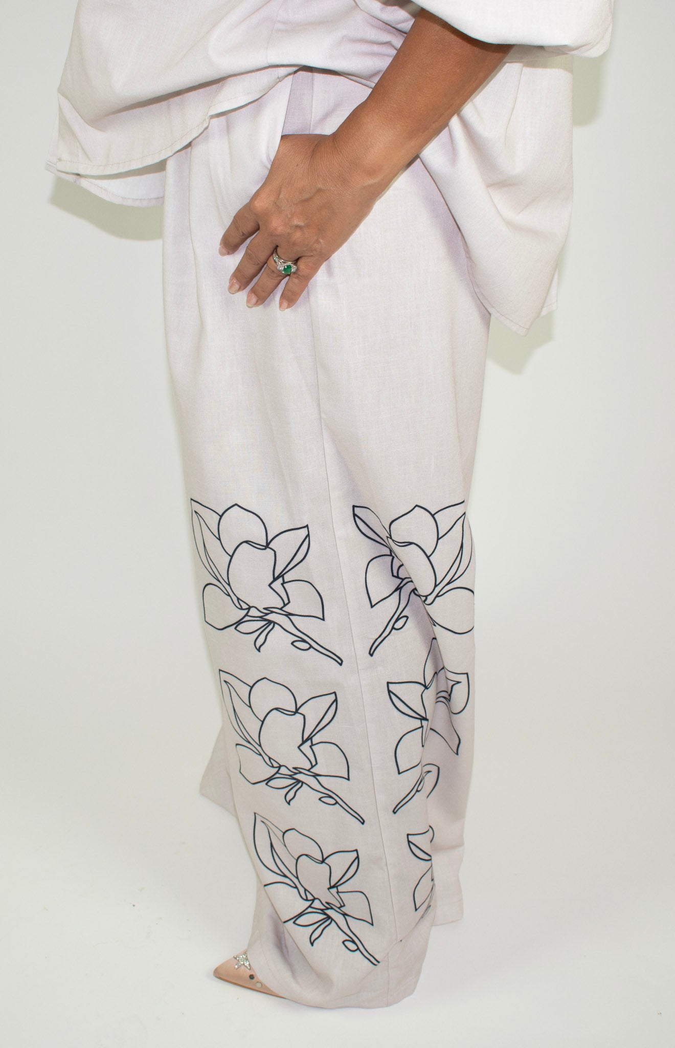 Beautiful Apricot cotton pants and top embossed with a floral design.